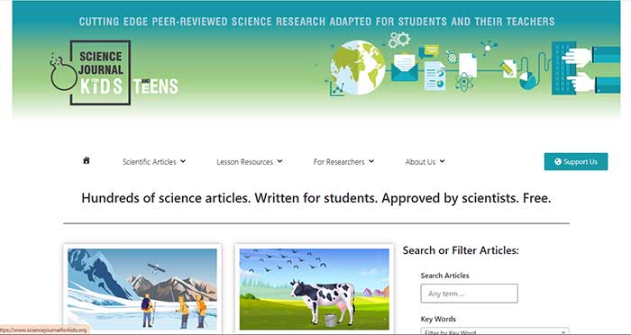 تصور کن نگار، یک نوجوان ۱۴ ساله، سایت Science Journal for Kids and Teens رو میبینه و با مقالهای در مورد “ذوب یخچالهای طبیعی” شگفتزده میشه. این سایت مثل یک آزمایشگاه مجازی، مقالات علمی رو برای دانشآموزان بازنویسی میکنه تا قابل فهم باشه. مقالات کوتاه – ۴۰۰-۷۰۰ کلمه – و توسط دانشمندان بررسی شدن.